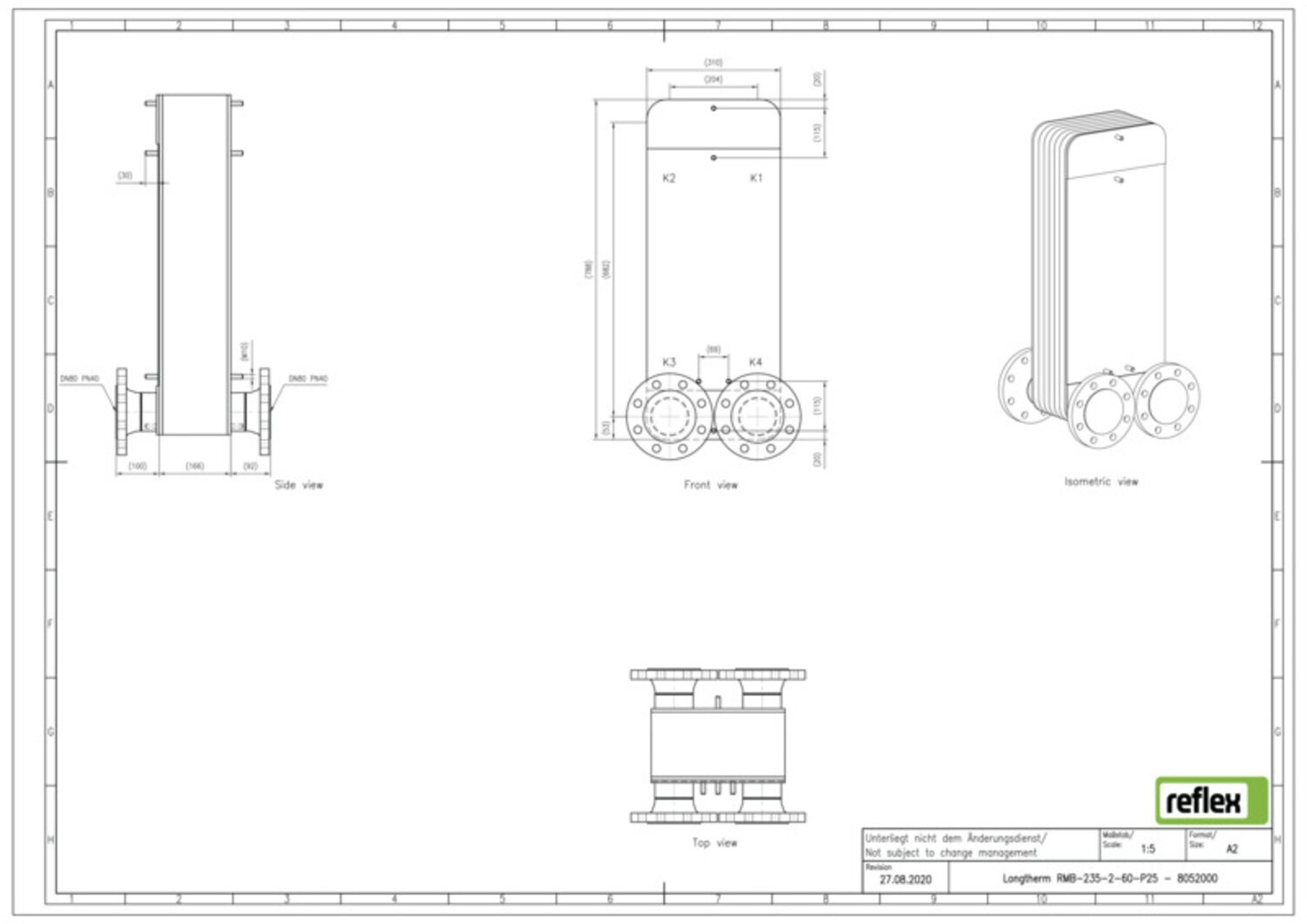 Reflex Wärmetauscher Longtherm RMB-235-2-60, Plattenzahl 60, gelötet, Edelstahl, zweigängig