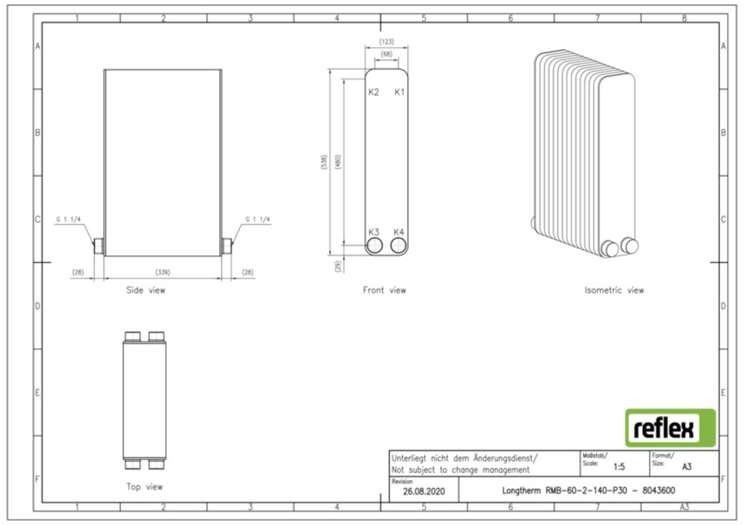 Reflex Wärmetauscher Longtherm RMB-60-2-140, Plattenzahl 140, gelötet, Edelstahl, zweigängig