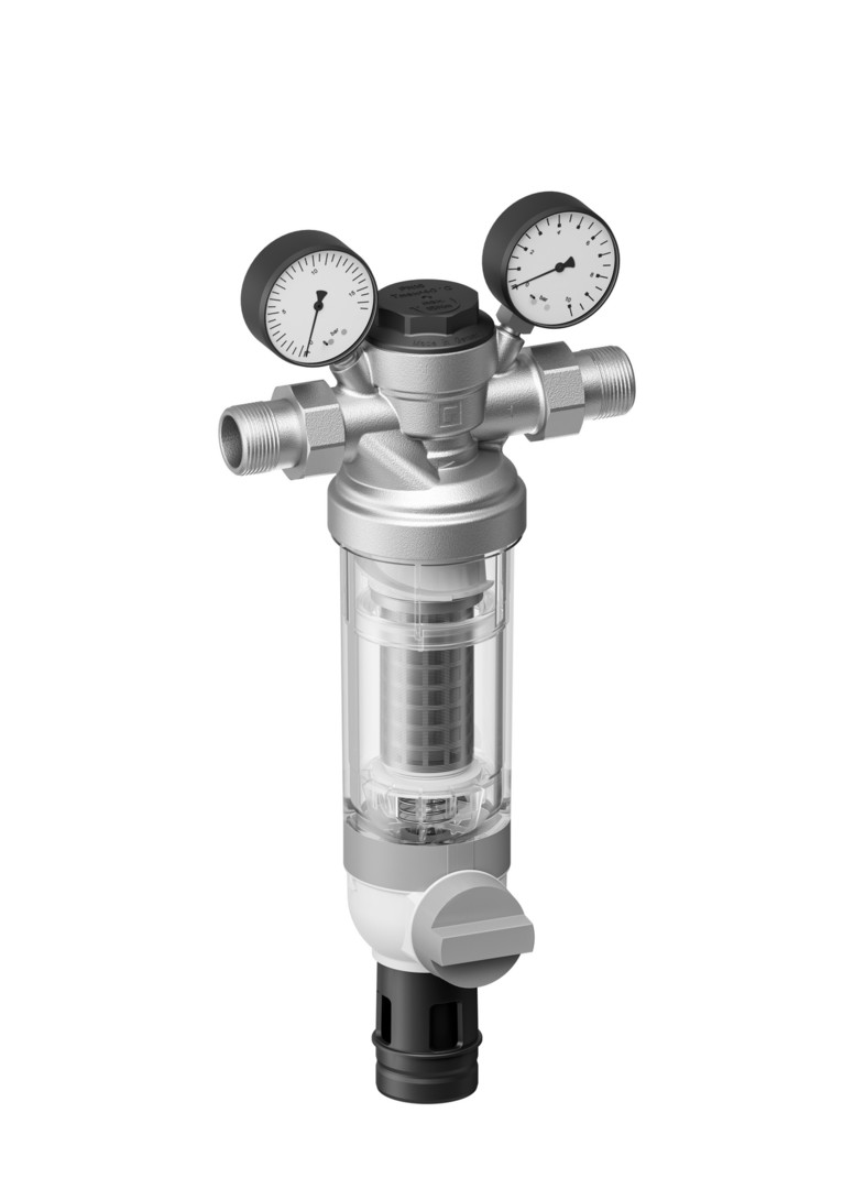 ununterbrochene Sicherung der Wasserversorgung mit gefiltertem Wasser, der Feinfilter verhindert das Einspülen von Fremdpartikeln und reduziert so die Korrosionswahrscheinlichkeit, das Gerät entspricht den Anforderungen der jeweils gültigen DIN/DVGW-Vorgabe, Material bleifrei (Bleigehalt aller Materialien weniger als 0,1 %), DoubleSpin Technologie für die Nennweiten 1/2" bis1 1/4", Kartusche mit außenliegendem Rotor, dadurch gleichzeitige Reinigung von unterem und oberem Filterbereich, bei gleichzeitiger visueller Funktionskontrolle, auch während der Rückspülung Versorgung mit gefiltertem Wasser, Rückspülsystem für Reinigen des Filters bei gleichzeitig geringem Wasserverbrauch, Rückspülautomatik mit ISO-Flansch-Anschluss nachrüstbar, Filtertasse aus stoßfestem Kunststoff ermöglicht eine visuelle Kontrolle der Filterverschmutzung, Filtereinsatz und komplette Filtertasse austauschbar, mit Nachrüstdruckminderer zur Filterkombination umrüstbar, alle Materialien gemäß UBA KTW, vom TÜV LGA als geräuscharm zugelassen - Gruppe 1 ohne Einschränkungen, Medium Trinkwasser, Filtereinheit 100 µm, max. min. Eingangsdruck 1,5 bar, max. Vordruck 16 bar, Mediumstemperatur 40 °C, Einbaulage horizontal