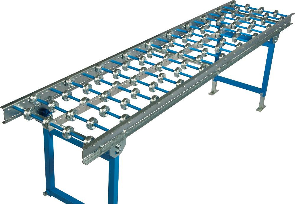 Hinweis zur Nutzung: Das Fördergut muss mindestens eine Breite von 200 mm haben, und einen flächigen und stabilen Unterboden aufweisen. Die Leicht-Röllchenbahnen sind für Güter bis 30 kg/Stück (Richtwert) ausgelegt (Bahnbreite und Achsabstand müssen berücksichtigt werden).