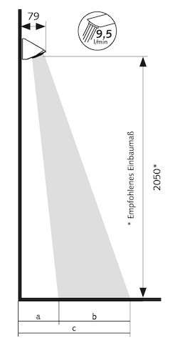 verstellbarer Neigungswinkel, vandalengeschützter Duschkopf mit Softstrahl und Antikalknoppen, abgewinkelte Bauform minimiert die Suizidwahrscheinlichkeit, mit Duschkopf, Durchfluss max. 9,5 l/min druckunabhängig, Gehäuse Messing konform TrinkwV, Oberfläche chrom, Anschluss DN 15 G 1/2 AG, Zertifikate: P-IX 29941/IZ, Geräuschklasse I, Durchflussklasse Z