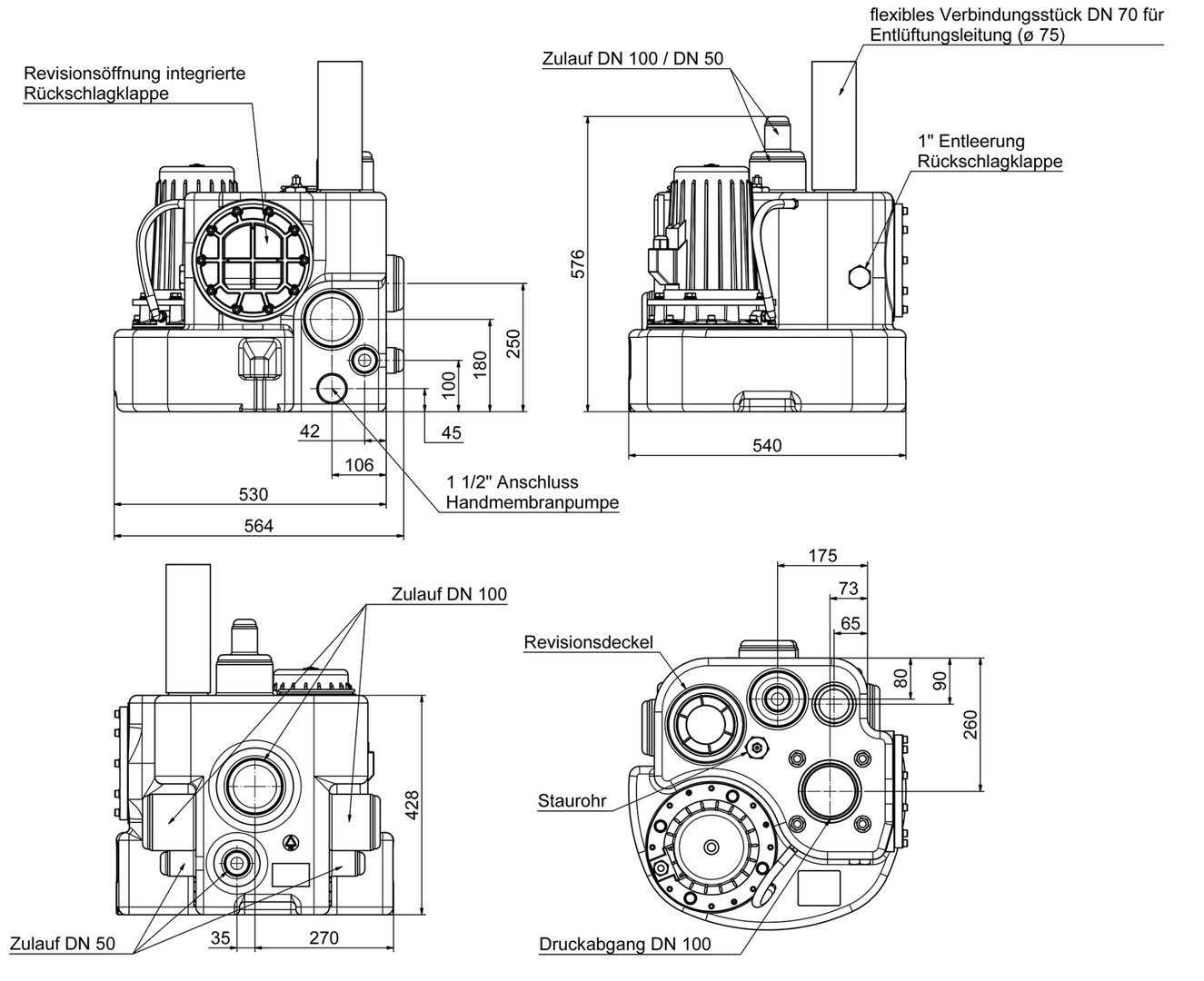 | Nenndurchmesser Anschluss Auslassseite | DN 100 |