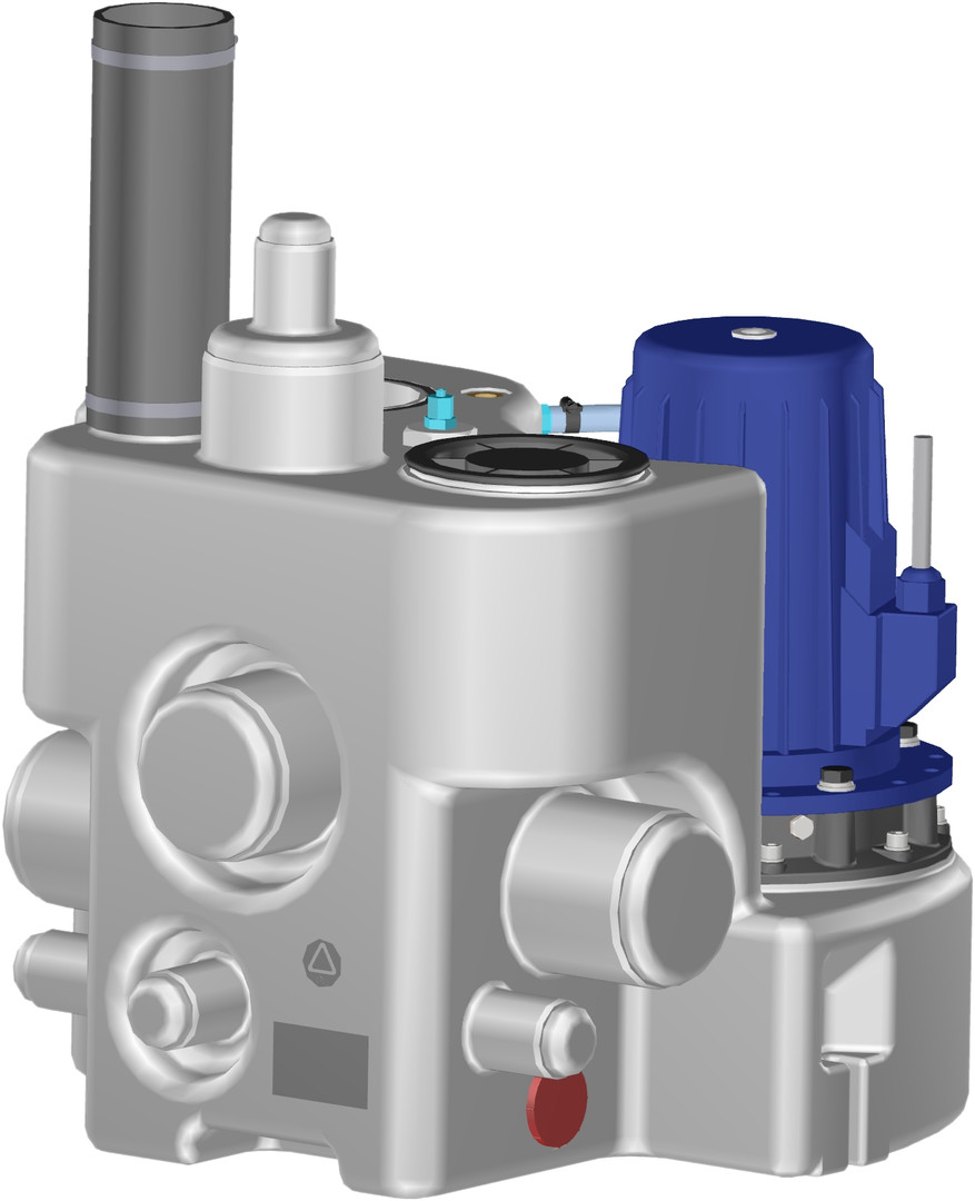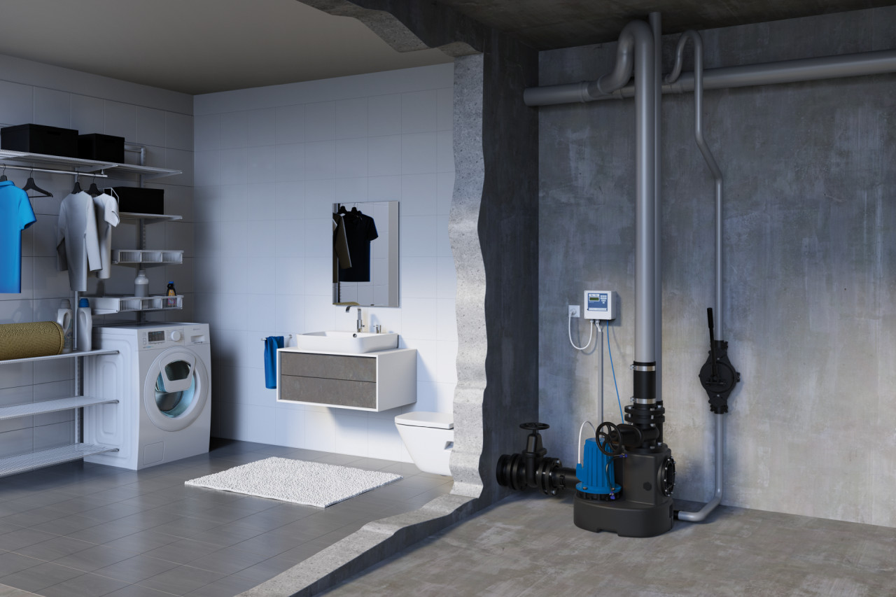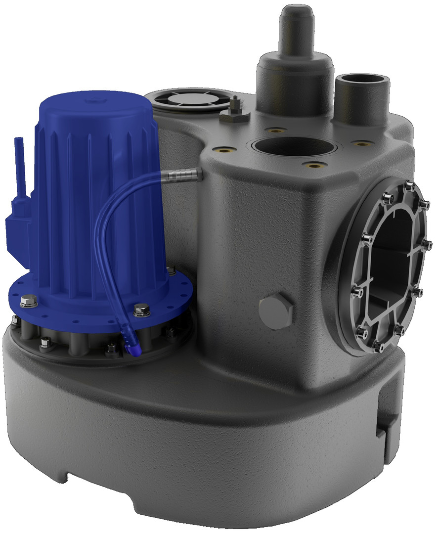 einmotorig, mit Freistromrad, für das Fördern von allen Abwässern aus Einfamilienhäusern, Sanitärobjekten oder kleinen Geschäftsräumen, 7 Einlässe, pneumatisches Steuerterminal ZPS 1 mit akustischem und optischem Alarm, vormontierte Anlage mit Verbindungsstücke und Rückschlagventil, bodenstehend, Schachtöffnung 60 cm