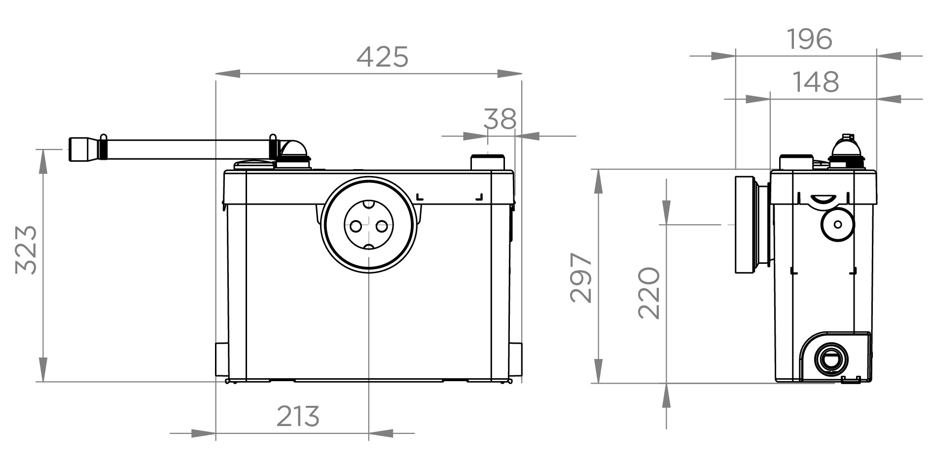 für WC, WT, Dusche, Urinal, Bidet, Höhe 5 m, Weite 100 m, Druckleitung DN 25/32