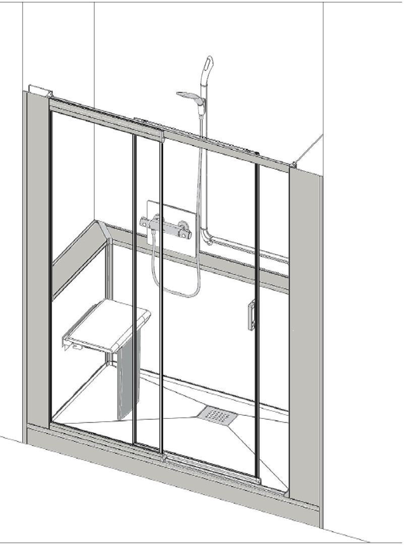 SFA Kinedo Kinemagic Royal Plus 100x80 halb hohe Nischenausführung mit Schiebetür Klappsitz Einhebelmischer Relinggriffsystem mit Magnethandbrause Klarglas mit mattiertem Mittelstreifen und Antikalkbehandlung Duschwanne PN24 6mm Sicherheitsglas
