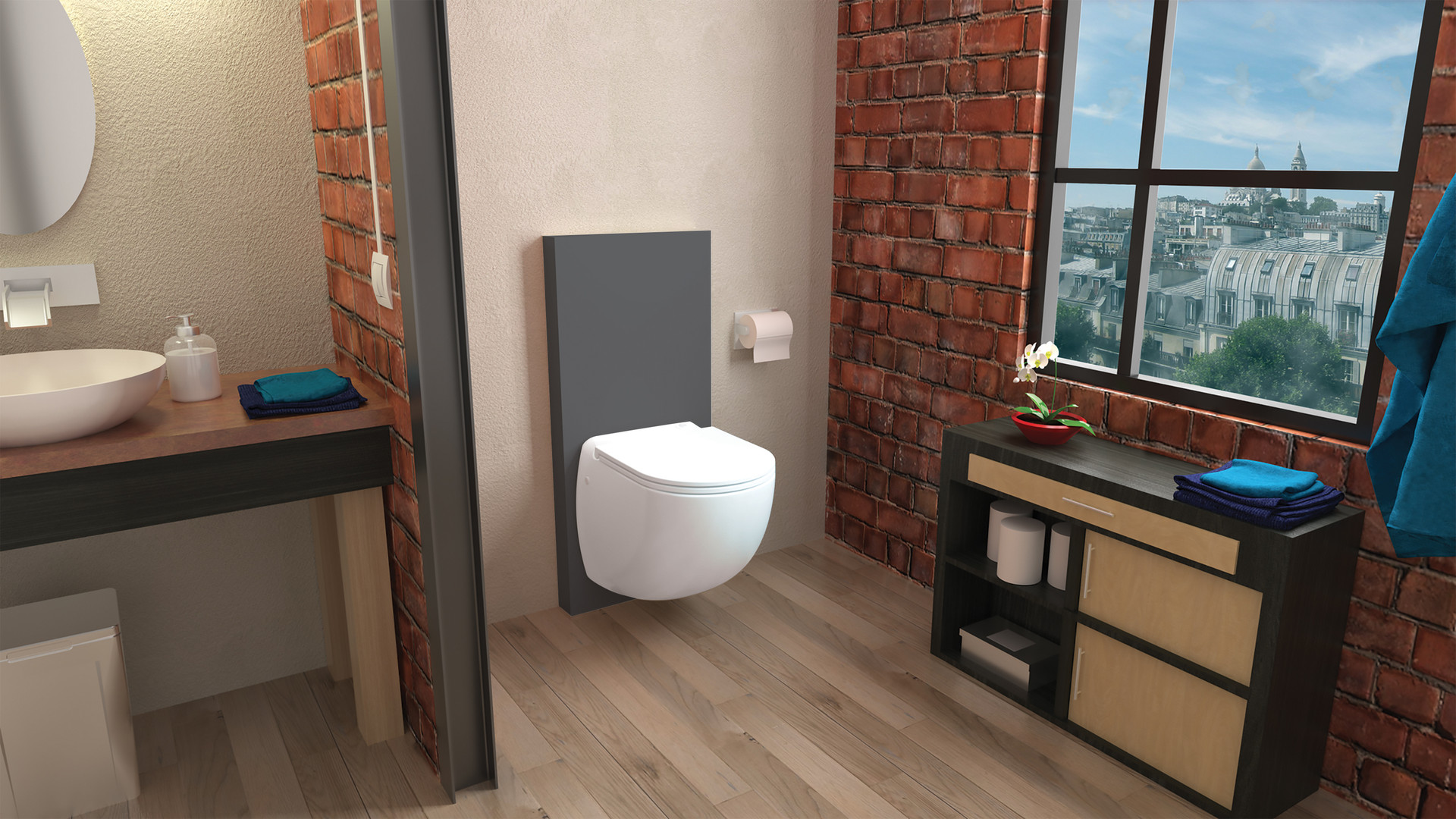 SFA Wand-WC SaniCompact Comfort Box anthrazit, mit Hebeanlage, Montagerahmen und Verkleidung