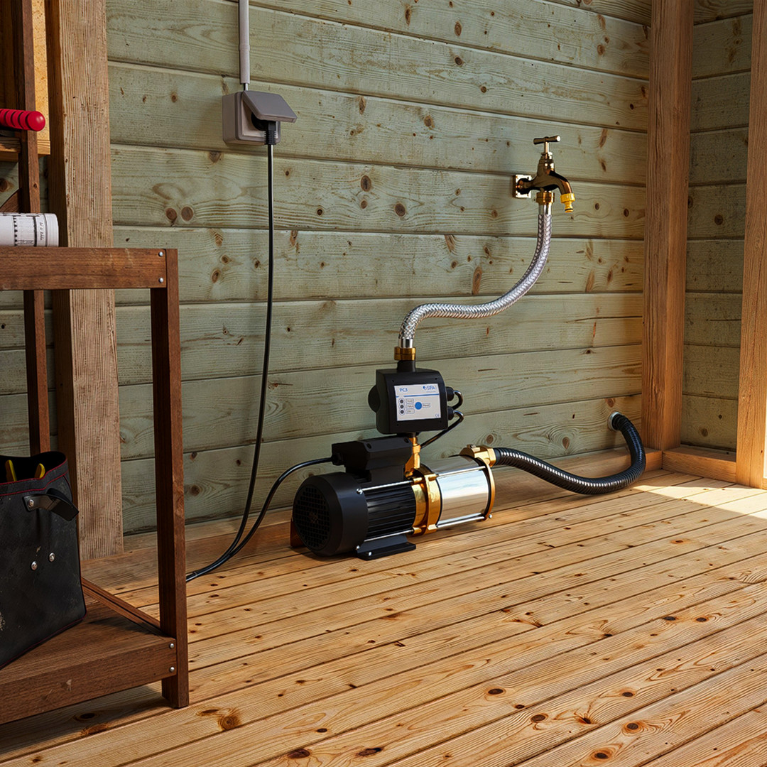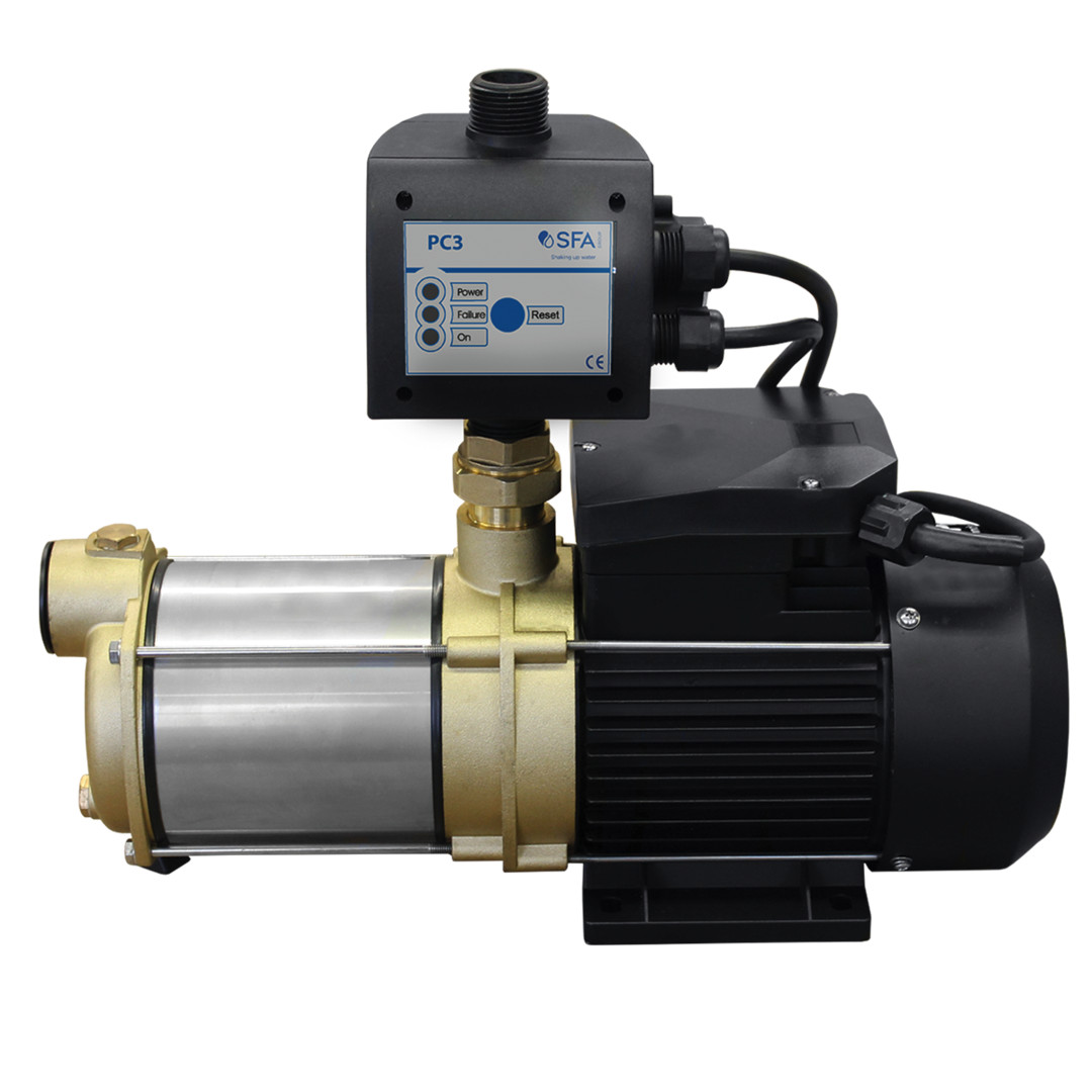 SFA horizontale mehrstufige Kreiselpumpe SaniMHP 4-40 PC3, mit Drucksteuerung PC3, selbstansaugend, Messingpumpengehäuse, 230 V