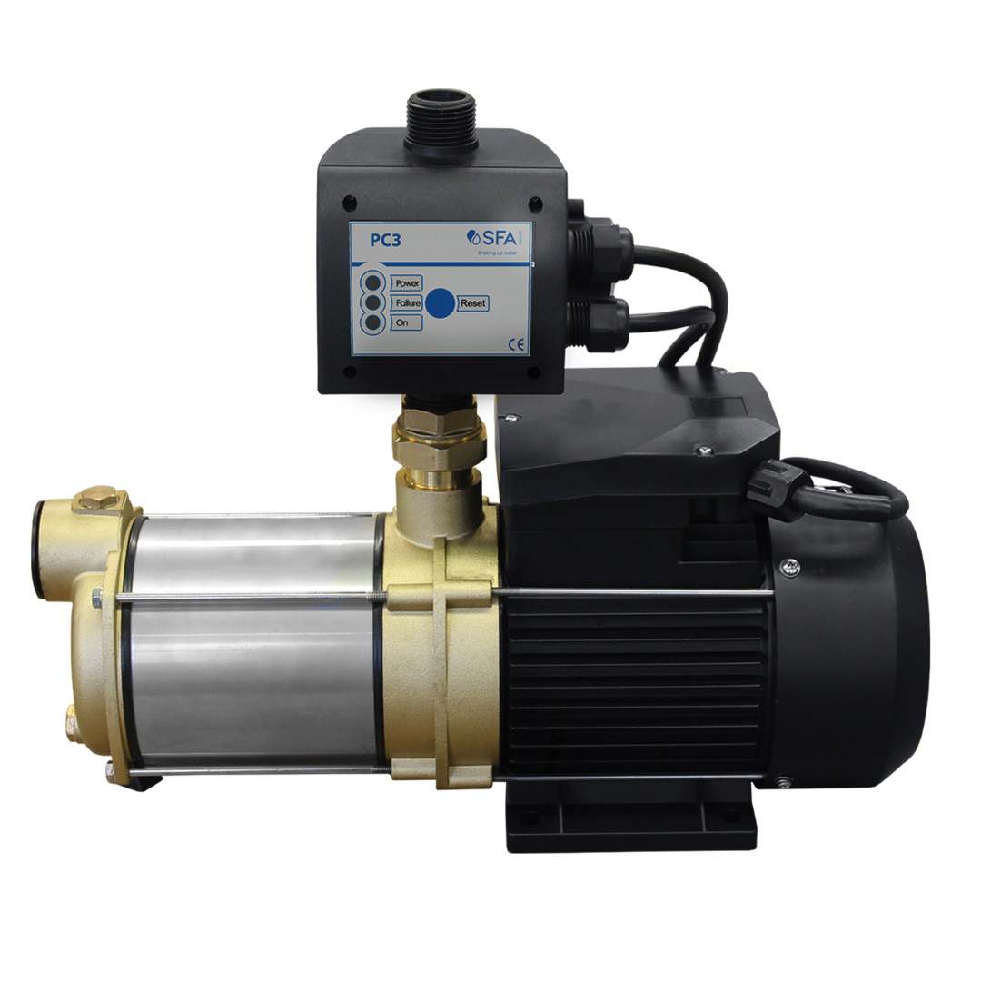 SFA horizontale mehrstufige Kreiselpumpe SaniMHP 4-50 PC3, mit Drucksteuerung PC3, selbstansaugend, Messingpumpengehäuse, 230 V