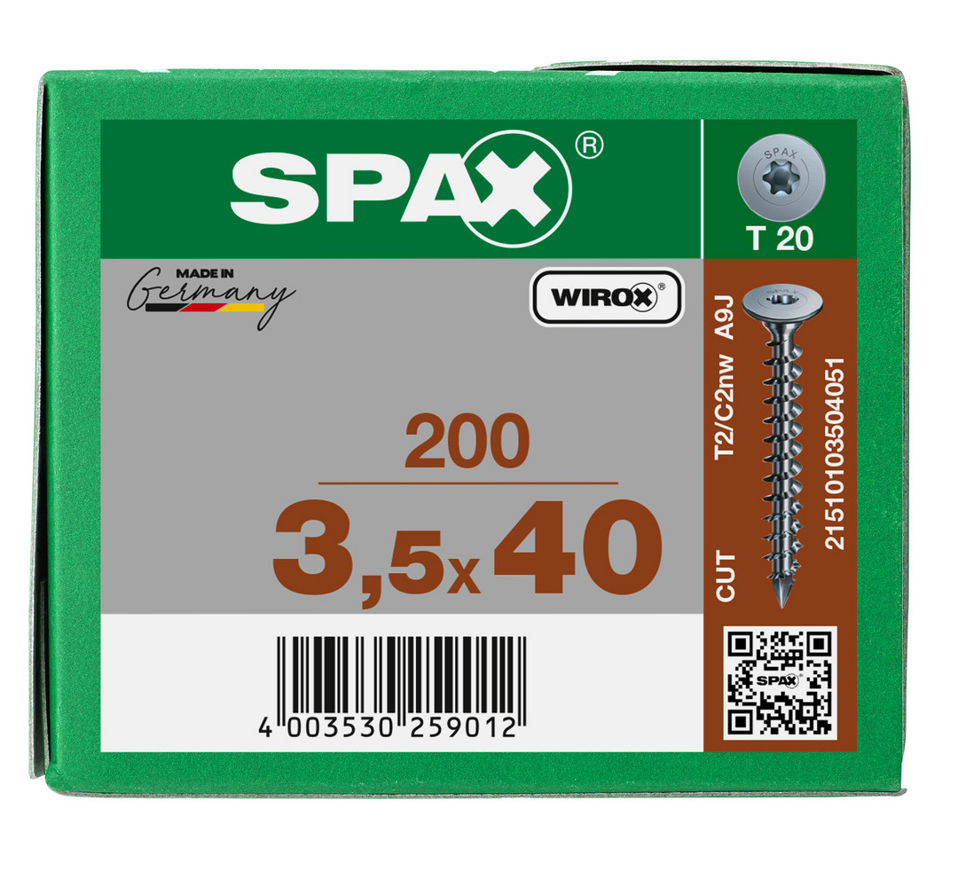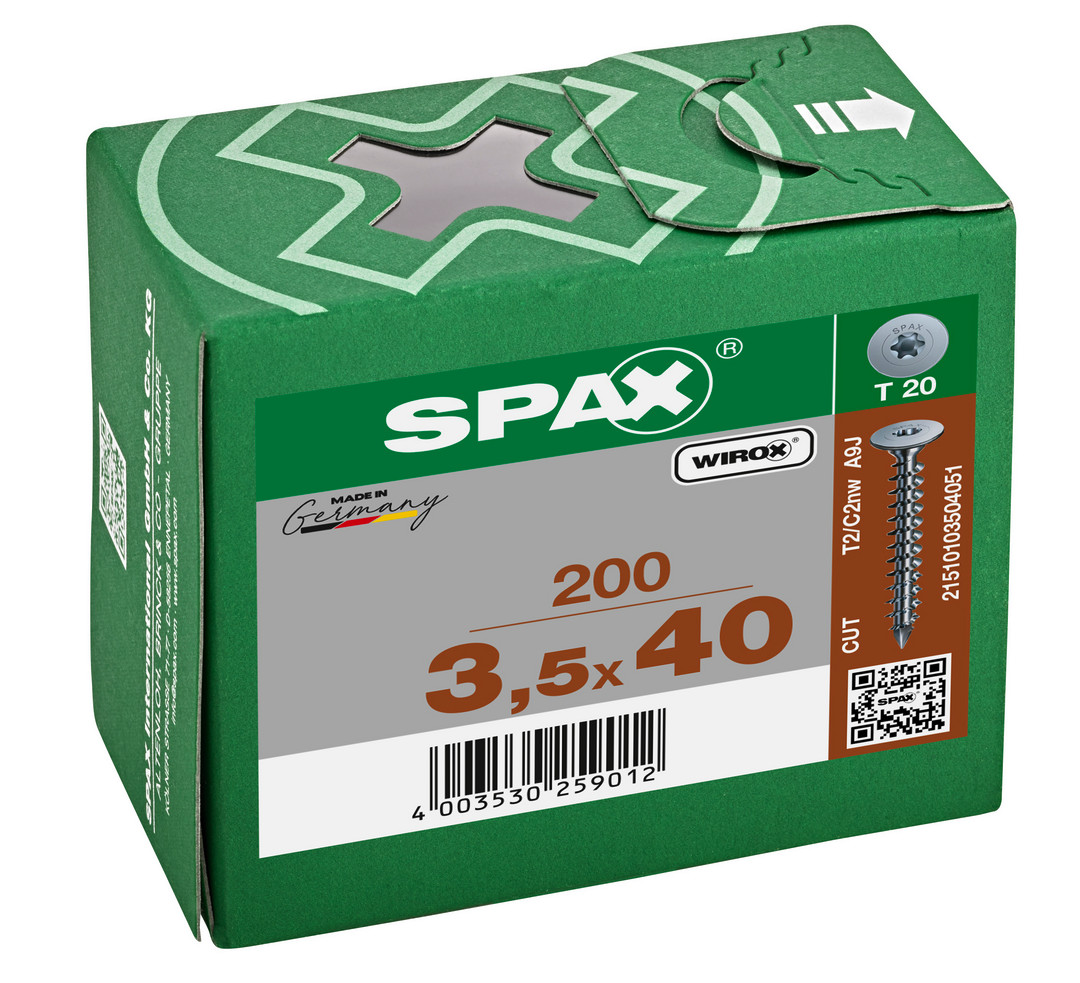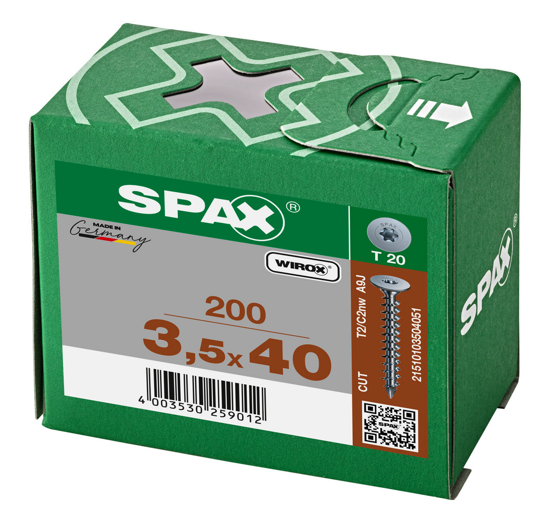 SPAX Flachrückwandkopf für Rückwände, 3,5 x 40 mm, 200 Stück, Vollgewinde, Rückwandkopf, T-STAR plus, CUT-Spitze, WIROX - 21510103504051