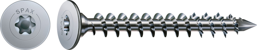 Die Universalschraube ist der absolute Allrounder im Sortiment von SPAX. Sie kann fast alles – zum Beispiel ganz ohne das nervige Vorbohren in Nadelhölzer wie Fichten- und Kiefernholz sowie in die gängigen Holzwerkstoffplatten (MDF, Span- und OSB-Platten) eingedreht werden. Dabei spielt unsere Universalschraube ihre Überlegenheit vor allem im Innenausbau- und Möbelbaubereich aus, aber auch außen ist sie mit dem passenden Korrosionsschutz gut verwendbar. Durch ihre besondere Gewindegeometrie ist der Eindrehwiderstand beim Schrauben wesentlich geringer als bei herkömmlichen Schrauben, was nicht nur Ihre Kräfte und Nerven, sondern natürlich auch den Akku des eingesetzten Schraubers schont. Ein Aufspleißen des Holzes in Randnähe wird nahezu vollständig unterbunden. Das bedeutet für Sie: Sie drehen mehr Schrauben pro Akkuladung ein, und Sie müssen sich keine Sorgen um aufgerissene Holzenden mehr machen!
