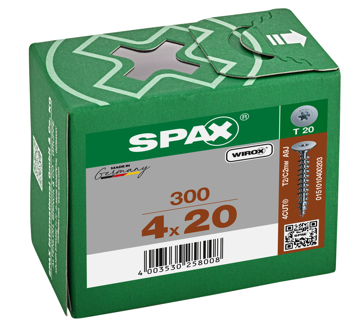 SPAX Flachrückwandkopf für Rückwände, 4x 20 mm, 300 Stück, Vollgewinde, Rückwandkopf, T-STAR plus, 4CUT, WIROX - 0151010400203