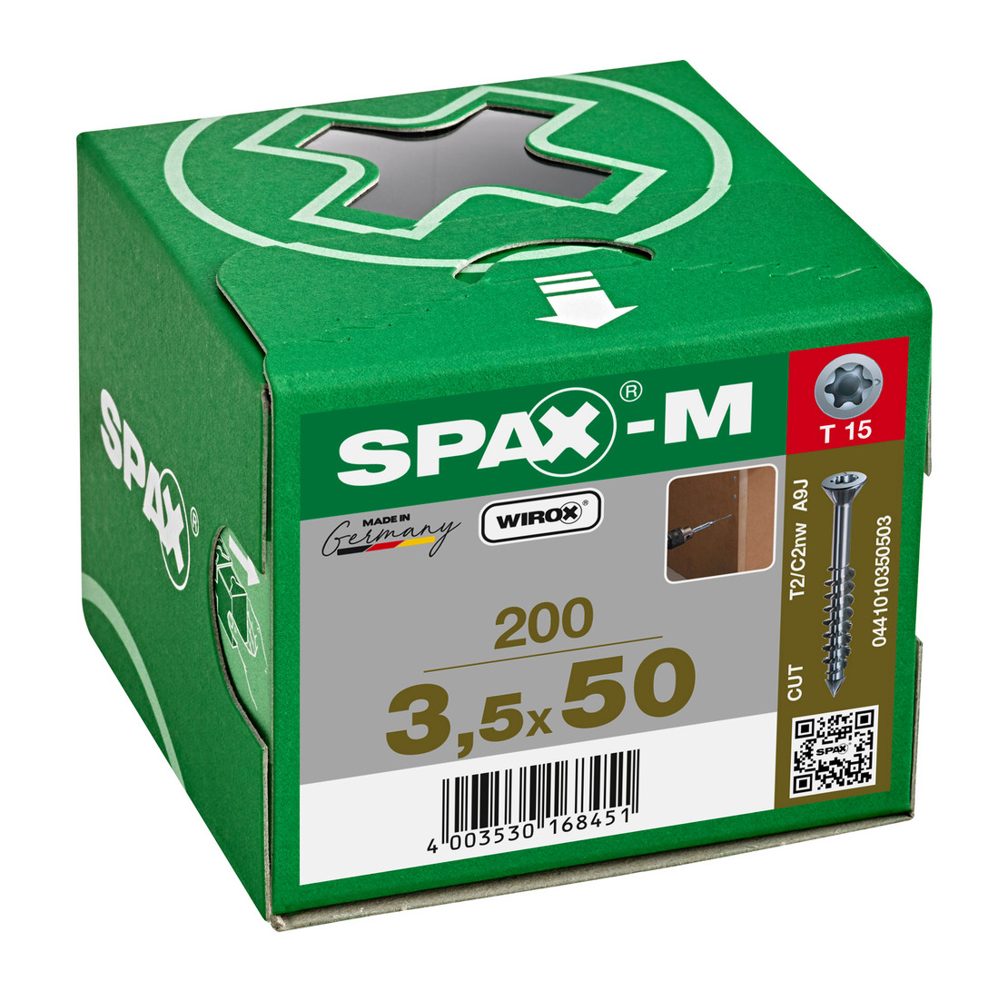 SPAX-M, 3,5 x 50 mm, 200 Stück, Teilgewinde, Senkkopf, T-STAR plus T15, CUT-Spitze, WIROX - 0441010350503