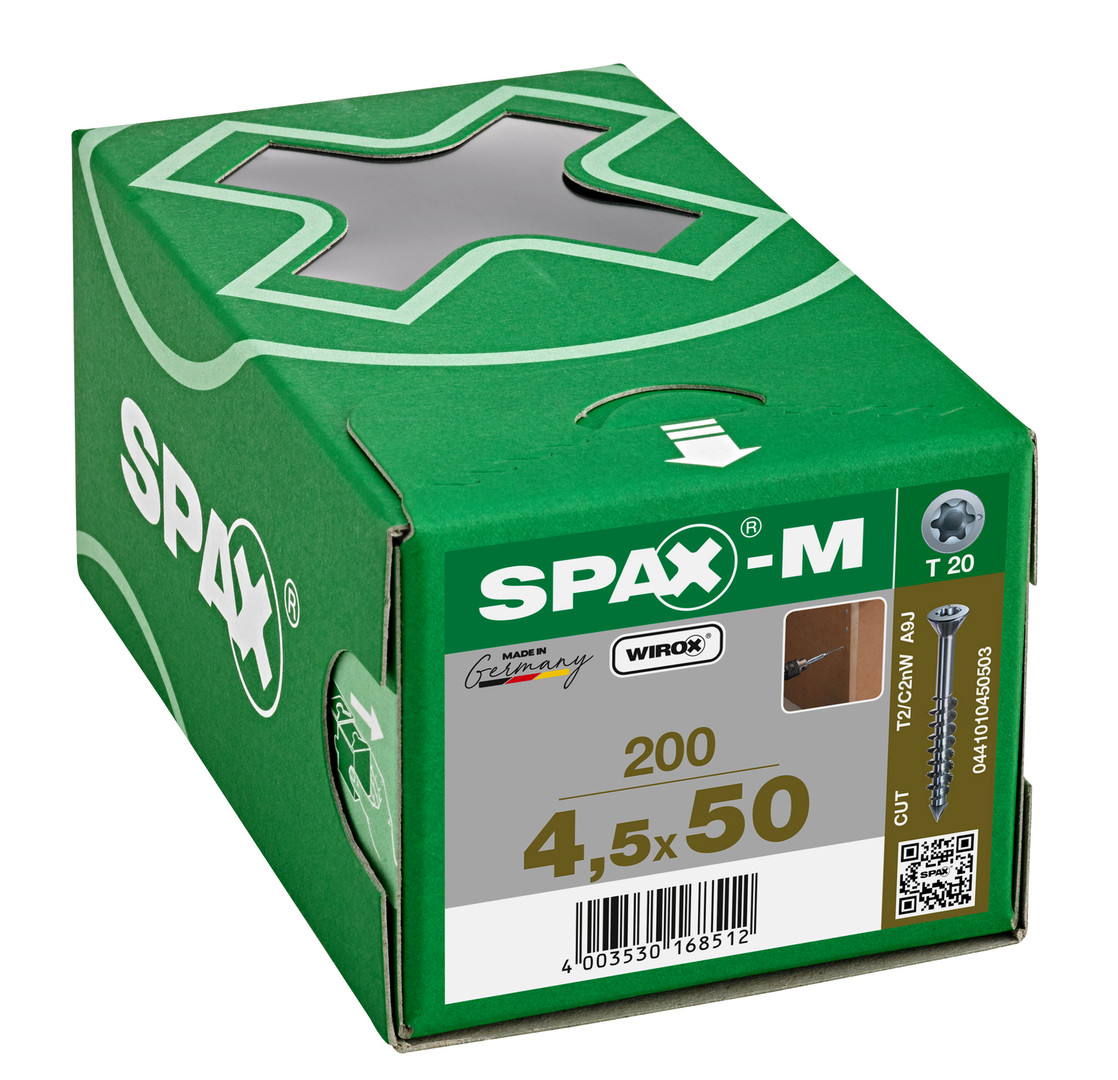 SPAX-M, 4,5 x 50 mm, 200 Stück, Teilgewinde, Senkkopf, T-STAR plus T20, CUT-Spitze, WIROX - 0441010450503
