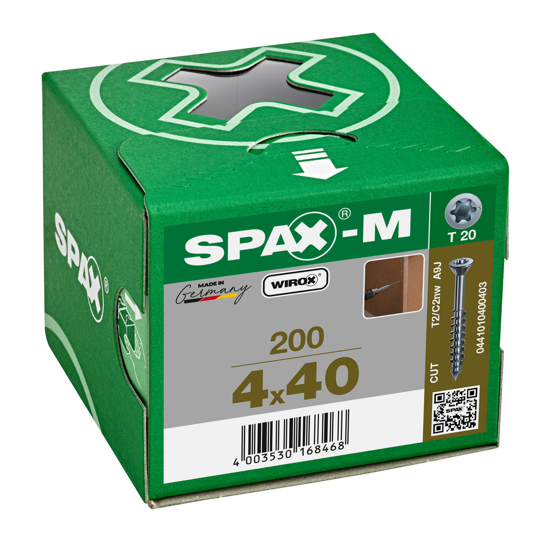 SPAX-M, 4 x 40 mm, 200 Stück, Teilgewinde, Senkkopf, T-STAR plus T20, CUT-Spitze, WIROX - 0441010400403