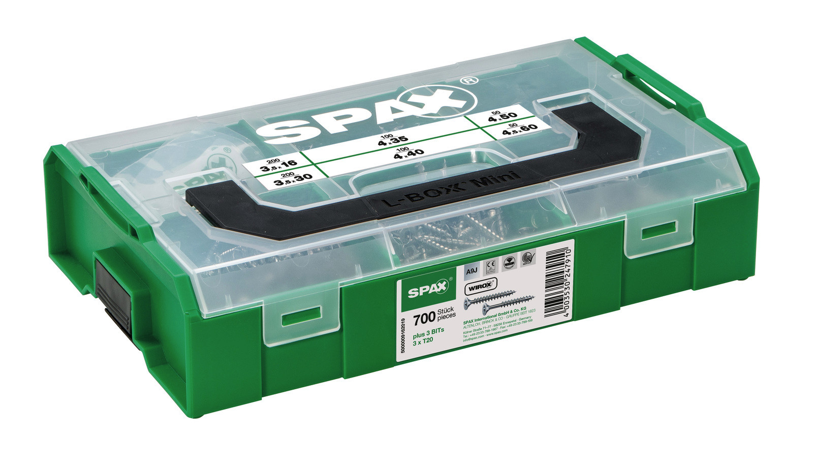 SPAX Montagekoffer L-BOXX Mini, 1 Stück, Schraubenset mit 6 Abmessungen, Senkkopf, T-STAR plus, 4CUT, WIROX - 5000009162019