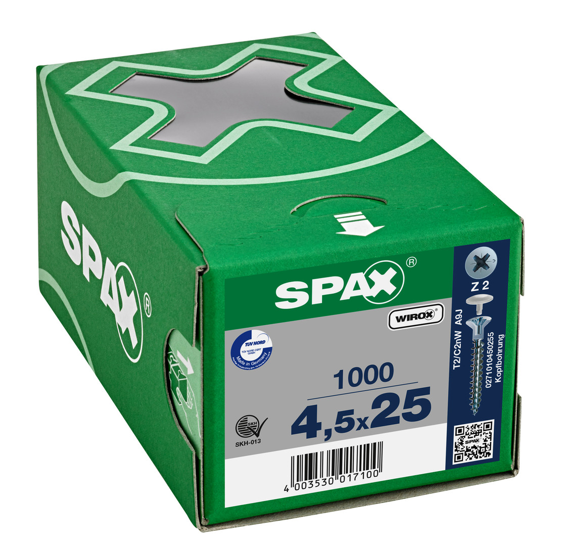 SPAX Universalschraube mit Kopfbohrung, 4,5 x 25 mm, 1000 Stück, Vollgewinde, Senkkopf, Kreuzschlitz Z2, S-Spitze, WIROX - 0271010450255