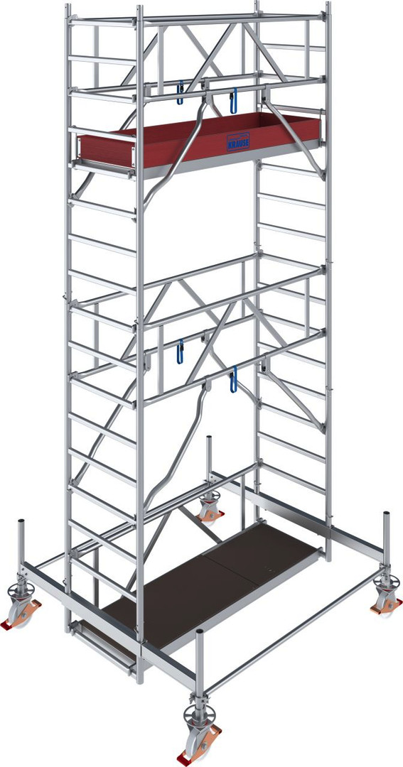 + Das universelle Alu-Fahrgerüst für Arbeiten bis zu einer max. Arbeitshöhe von 14,50 m (bei Gerüstfeldlänge 2,00 m bis zu 12,50 m)