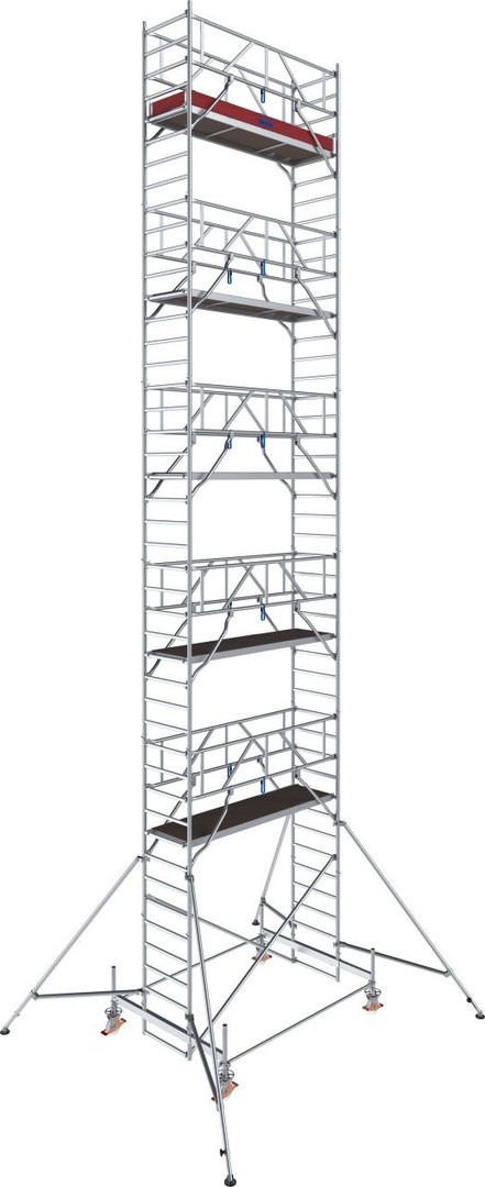 + Das universelle Alu-Fahrgerüst für Arbeiten bis zu einer max. Arbeitshöhe von 14,50 m (bei Gerüstfeldlänge 2,00 m bis zu 12,50 m)