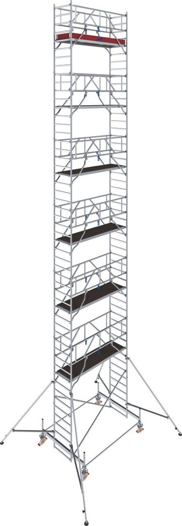 + Das universelle Alu-Fahrgerüst für Arbeiten bis zu einer max. Arbeitshöhe von 14,50 m (bei Gerüstfeldlänge 2,00 m bis zu 12,50 m)