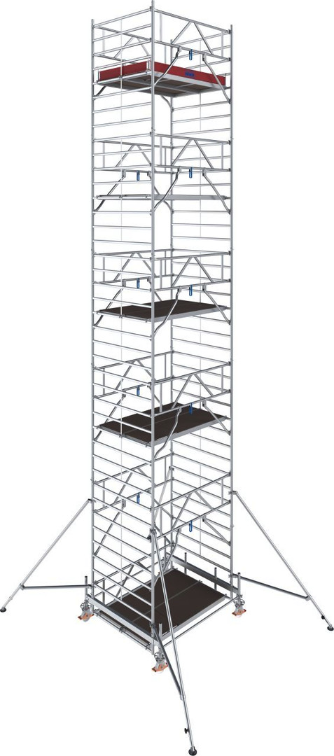 + Das universelle Alu-Fahrgerüst für Arbeiten bis zu einer max. Arbeitshöhe von 14,50 m (bei Gerüstfeldlänge 2,00 m bis zu 12,50 m)