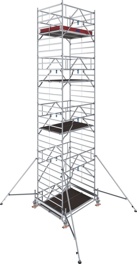 + Das universelle Alu-Fahrgerüst für Arbeiten bis zu einer max. Arbeitshöhe von 14,50 m (bei Gerüstfeldlänge 2,00 m bis zu 12,50 m)