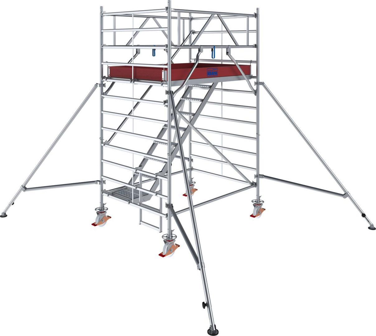 Das professionelle Alu-Fahrgerüst mit komfortablem Treppenaufgang und doppelter Arbeitsfläche.