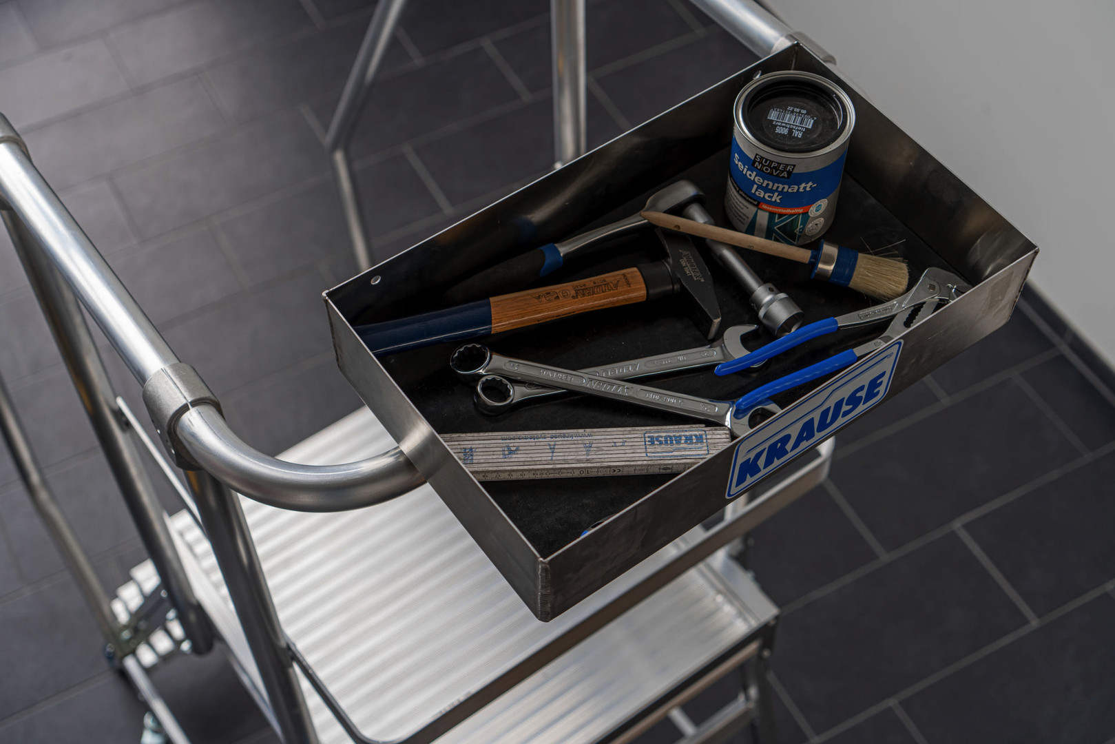 Praktische, klemmbare Ablageschale für sichere Lagerung von Werkzeug