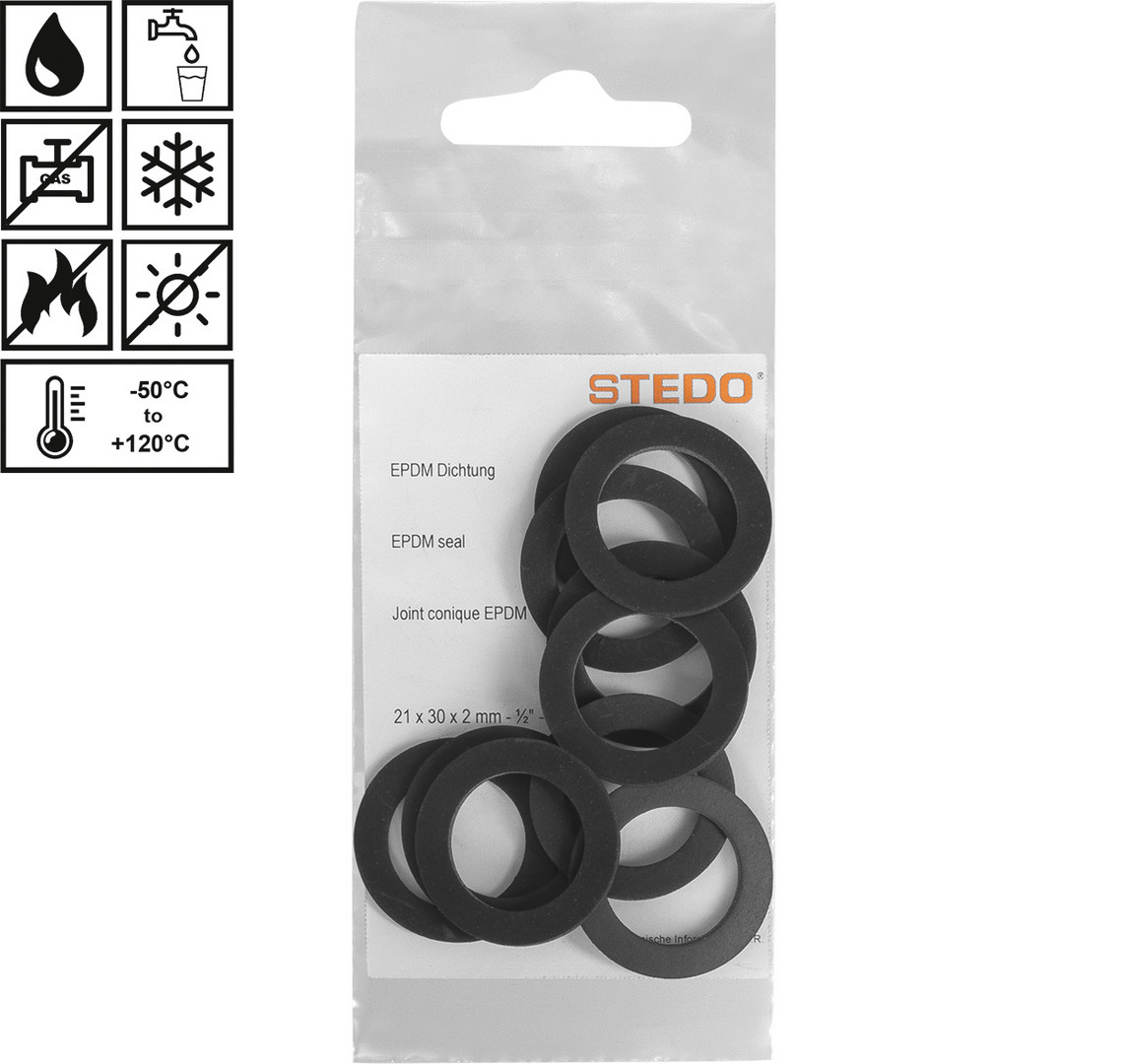 STEDO EPDM-Dichtungsset 10 Stück 3/8", 19 x 27 x 2 mm, für Rohrverschraubung im Trinkwasserbereich