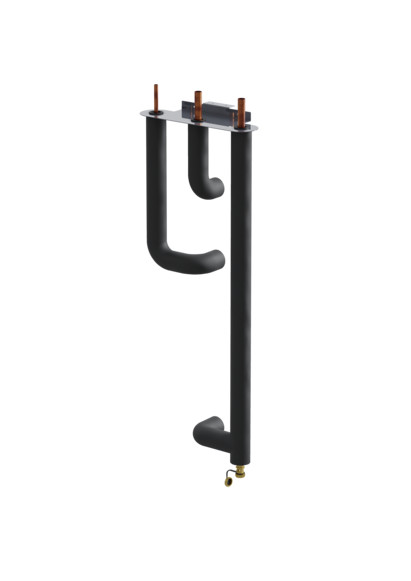mit dem Rohrbausatz werden bei Integralspeichern die trinkwasserseitigen Anschlüsse nach oben hinter das Gerät verlegt, von dort aus erfolgt der hydraulische Anschluss an Kupfer-Anschlussstutzen, die einzelnen (vormontierten) Anschlussstränge werden durch eine Montageschiene ausgerichtet und werden am Integralspeicher montiert