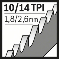 Das S 922 VF Flexible for Wood and Metal Säbelsägeblatt eignet sich für mühelose Schnitte in Holz und Metall. Die Vario Zahngeometrie (1,8/2,6 mm) ermöglicht glattes, vibrationsreduziertes Schneiden. Das Bimetallblatt ist zudem für das Schneiden von weichen Nägeln, Baustahl und NE-Metallkomponenten in Holz optimiert. Dieses Säbelsägeblatt mit einer Standardlänge (150 mm) hat eine Schnittleistung von bis zu 100 mm.