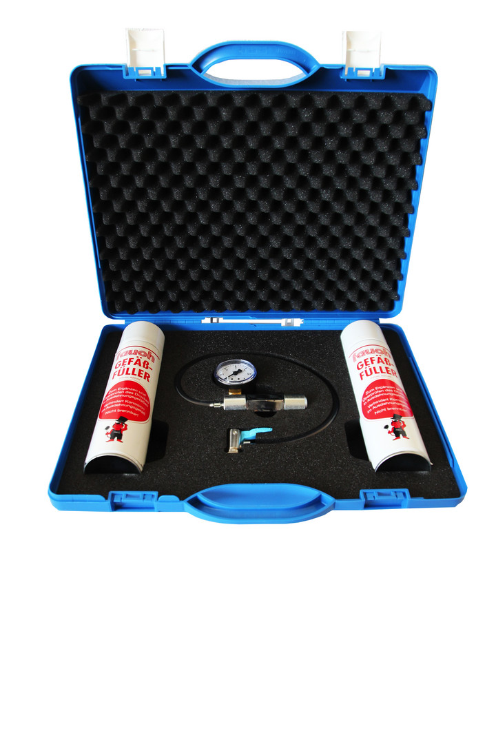 Profi-Koffer für Handwerker, zur Füllung, Ergänzung, Korrektur und Überprüfung des Druckpolsters in Mebranausdehnungsgefäßen von Heizungs- und Druckwasseranlagen