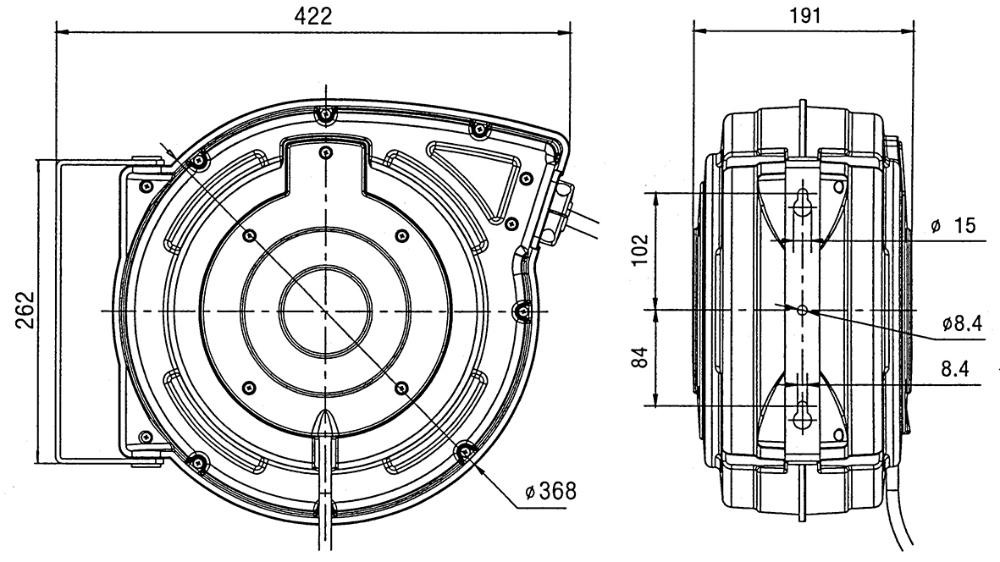 • Geschlossener Schlauchaufroller: mit schwenkbarem Befestigungsbügel ( Wand- oder Deckenmontage)