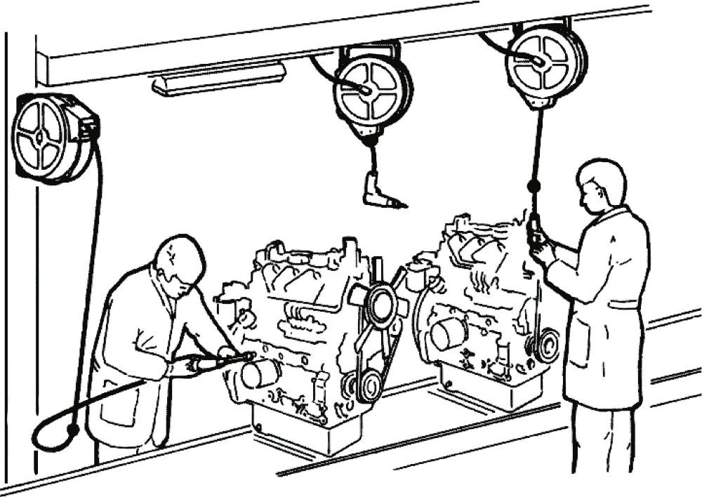 • Offener Schlauchaufroller: mit robuster, gekapselter, dauergeschmierter Antriebsfeder