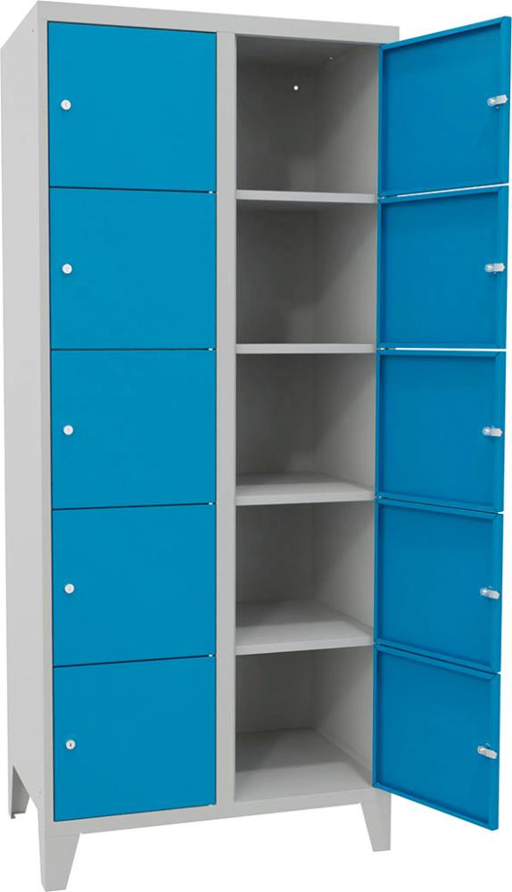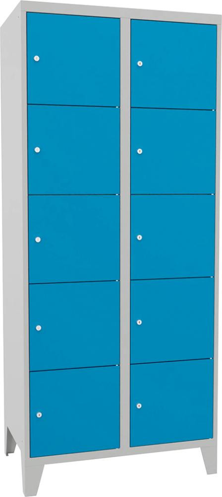 Schließfachsch. 5 Fächer 2 Reihen, 400mm auf Füßen RAL 7035/5012 B800xT500xH1850mm