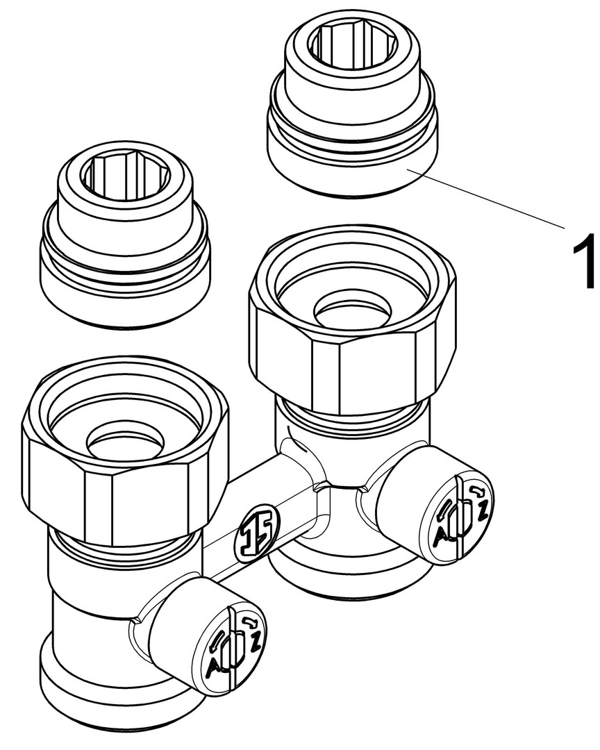 DN 15, Zweirohrsystem, mit Ausgleichsstück, Gehäuse, Oberteile, Verschraubung aus Messing, Betriebstemperatur max. 120 °C, Betriebsdruck max. 10 bar (PN 10), pH-Wert zulässiger Bereich 4-9,5, Doppel-O-Ring-Dichtung, EPDM, d= 50 mm, Anschluss G 3/4, Anschlussnippel 3352