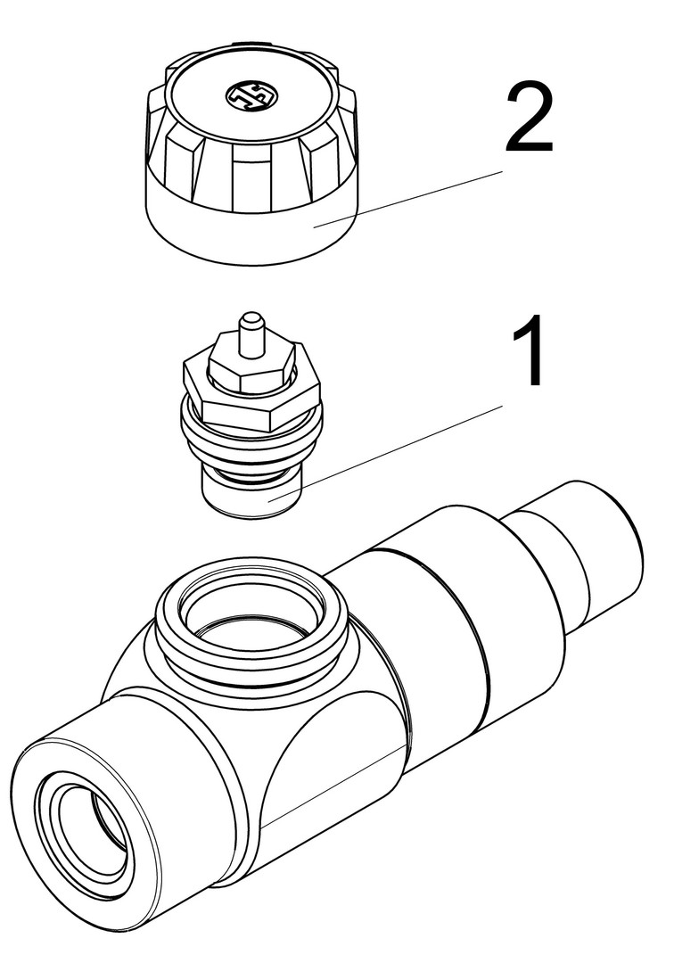 Gehäuse, Oberteile sowie Verschraubung aus Messing, Anschluss zum Heizkörper 1/2, vorbereitet für 15 mm Cu-Rohr, Betriebstemperatur max. 120 °C, Betriebsdruck max. 10 bar (PN 10), pH-Wert zulässiger Bereich 4-9,5, Doppel-Dichtung am Kegel, Spindel-O-Ring-Dichtung, EPDM