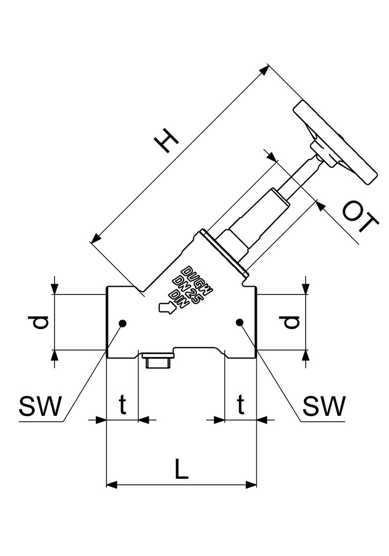 Schlösser KFR-Ventil PR1615 DN 25, Rp 1, ohne Entleerung, steigende Spindel