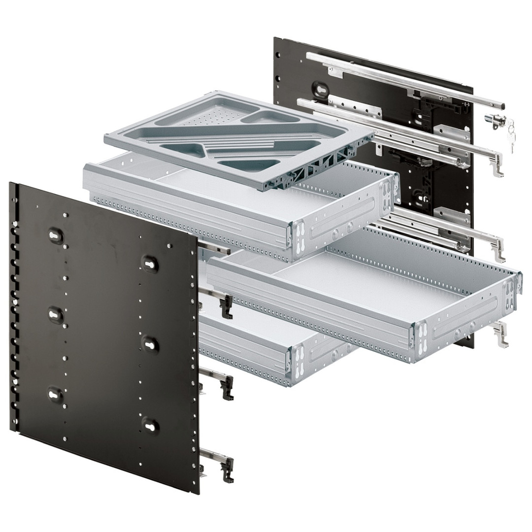 Schnellmontage Container-Set, Einbautiefe (min) 530 mm, Aluminium Optik