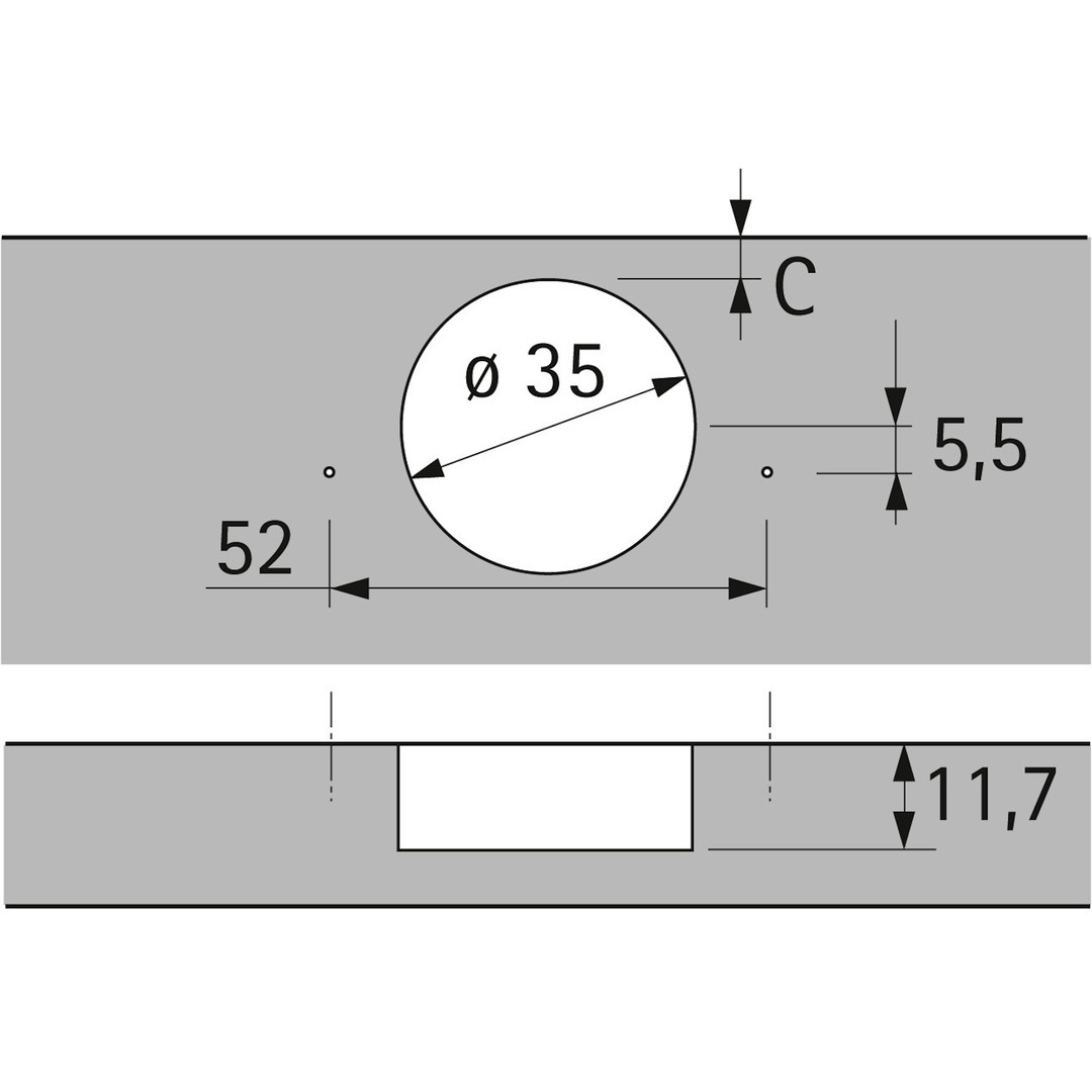 | Montageart | Hettich Direkt mit Pilotzapfen und Spezialschrauben |