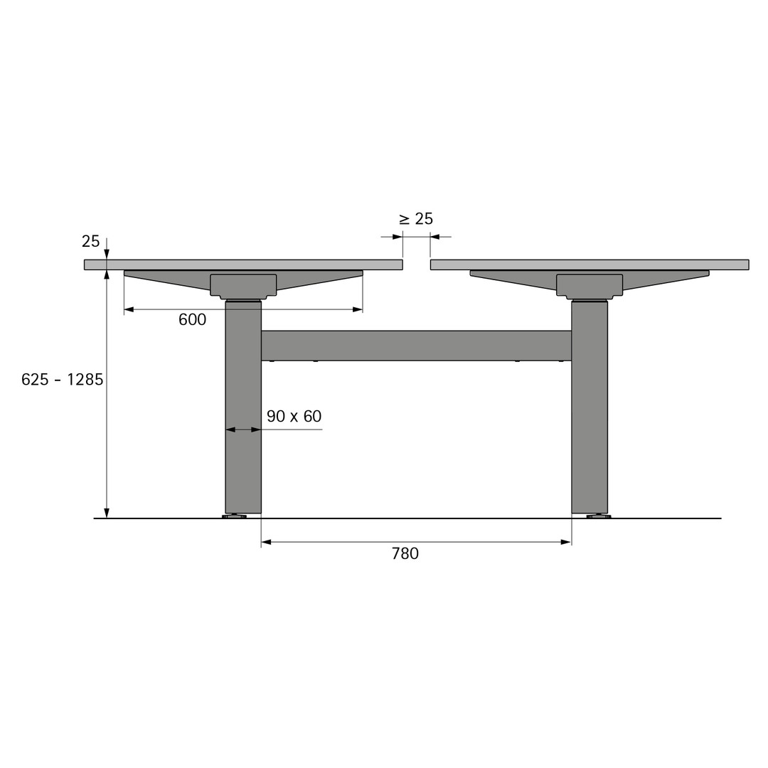 • Elektromotorisch höhenverstellbares Tischgestell für Doppelarbeitsplatz in Bench-Anordung