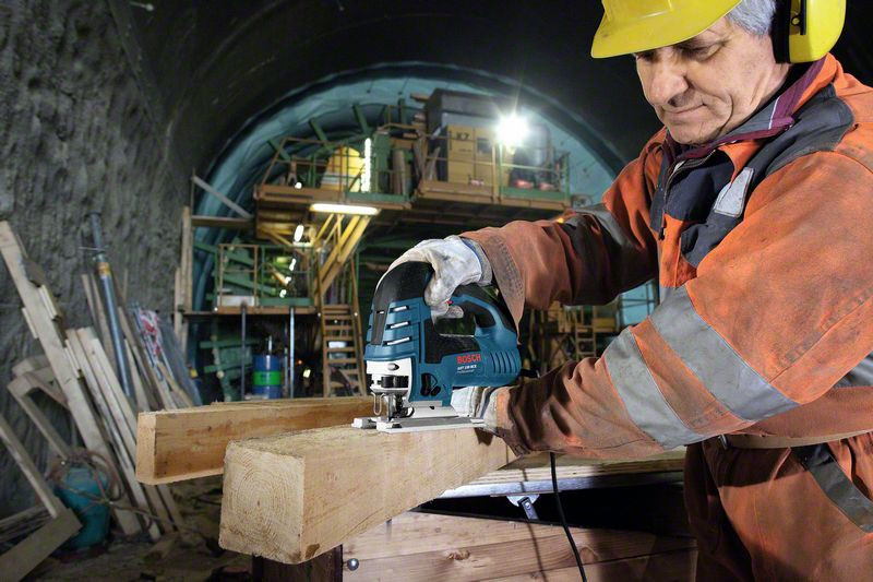 Stichsäge GST 150 BCE, Die kabelgebundene GST 150 BCE Professional ist eine robuste Stichsäge für anspruchsvolle Anwendungen. Bügelgriff mit Gasgebeschalter ermöglicht eine leichte Führung des Elektrowerkzeugs und müheloses Handling. Ihre Fußplatte mit hoher Biegefestigkeit ist extrem robust und sorgt für hohe Leistung auch bei Arbeiten mit höchster Beanspruchung. Ihr zuverlässiger 780-W-Motor und eine konstante Drehzahl ermöglichen Schnitte auch in den härtesten Materialien, z. B. dicke Balken. Dieses Gerät eignet sich für Kurvenschnitte in Massivholz, Spanplatten und Holzverbundwerkstoffen. Das Gerät ist kompatibel mit dem Bosch Click & Clean System und anderen Bosch Staubsaugern. Die GST 150 BCE Professional eignet sich auch für Gehrungsschnitte und verfügt über Gebläse, Pendelhub, werkzeuglosen SDS-Sägeblattwechsel und Drehzahlwahl. Spanreißschutz (2 601 016 096). Gleitschuh (ET-Nr. 2 601 099 183). Abdeckhaube (ET-Nr. 2 605 510 293). L-BOXX 136 (1 600 A01 2G0). Saugdüse (ET-Nr. 2 605 730 055). 1 x Stichsägeblatt T 144 D, Speed for Wood (separat erhältlich als 3er-Pack: 2 608 630 560). 1/1 L-BOXX-Einlage für Gerät (1 600 A00 2UP)