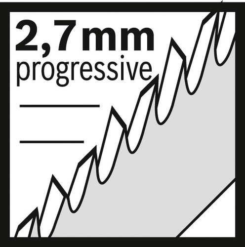 | Spezifisches RTB2 | Fein progressive Zahnteilung (2.7 mm) zum Schneiden von Holzwerkstoffen mit einer Dicke von 3-30 mm |