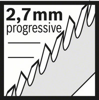 | Spezifisches RTB2 | Fein progressive Zahnteilung (2.7 mm) zum Schneiden einer Vielzahl an Holzmaterialien mit einer Dicke von 3-30 mm |
