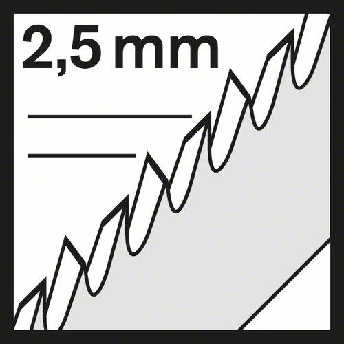 Das T 301 BCP Precision for Wood Stichsägeblatt macht präzise, saubere gerade Schnitte in Holz. Die erhöhte Stärke des Blatts verhindert Verbiegen und ermöglicht präzise, winkelhaltige Schnitte. Die präzisionsgeschliffenen Zähne des Blatts mit Kegelschliffkörper ermöglichen außerdem saubere Schnitte. Das Blatt aus Kohlenstoffstahl ist zum Schneiden von Weichholz und nicht-abrasiven Holzwerkstoffen geeignet. Es ist mit einer feinen Zahnteilung (2,5 mm) und einer großen Länge (117 mm) ausgestattet, um Holzmaterialien mit einer Dicke von 3-65 mm zu schneiden.