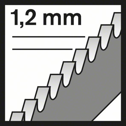 Das T 318 A Basic for Metal Stichsägeblatt macht Schnitte in Metall. Die gefrästen, gewellten Zähne sind ideal für grundlegende Schnitte ohne besondere Anforderungen. Das Blatt aus hochwertigem gehärtetem Hochgeschwindigkeitsstahl ist zum Schneiden von Rohren und geschlossenen Profilen aus Stahl (Standard-Stärke), Aluminium und Nichteisenmetallen geeignet. Die sehr feine Zahnteilung des Blatts (1,2 mm) schneidet dünnwandige Metallrohre und -profile mit 1-3 mm Wanddicke, während die große Länge (132 mm) Rohre und Profile mit einem Durchmesser von bis zu 65 mm schneidet. Für den Gebrauch mit Stichsägen mit T-Schaft-Aufnahme.