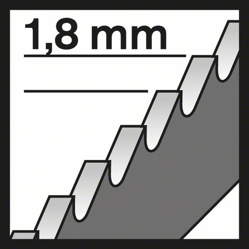 Das T 318 BF Flexible for Metal Stichsägeblatt ist bruchfest beim geraden Schneiden in Metall. Die gefrästen, gewellten Zähne sind zum Schneiden von Metallrohren und -profilen konzipiert. Die Zahnleiste aus gehärtetem HSS (Hochgeschwindigkeitsstahl) und BIM (Bimetall) ist mit hochelastischem HCS (Kohlenstoffstahl) verstärkt, wodurch das Bruchrisiko reduziert wird. Dadurch wird sowohl genügend Festigkeit als auch die erforderliche Flexibilität sichergestellt, um Rohre und offene Metallprofile (z. B. in L-/H-/U-/T-Form) aus Stahl (Standard-Stärke) zu schneiden. Die feine Zahnteilung des Blatts (1,8 mm) schneidet mittelstarke Metallrohre und -profile mit 2,5-6 mm Wanddicke, während die große Länge (132 mm) Rohre und Profile mit einem Durchmesser von bis zu 65 mm schneidet.