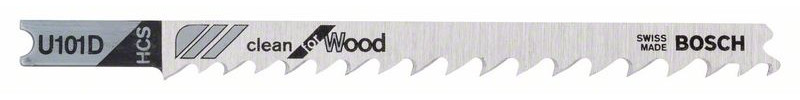 Das U 101 D Clean for Wood Stichsägeblatt macht saubere gerade Schnitte in Holz. Die präzisionsgeschliffenen Zähne mit Kegelschliffkörper bringen saubere Ergebnisse. Das Blatt aus Kohlenstoffstahl ist zum Schneiden von Weichholz und nicht-abrasiven Holzwerkstoffen geeignet. Es ist mit einer großen progressiven Zahnteilung (4-5,2 mm) ausgestattet, um Holzmaterialien mit einer Dicke von 10-45 mm zu schneiden.