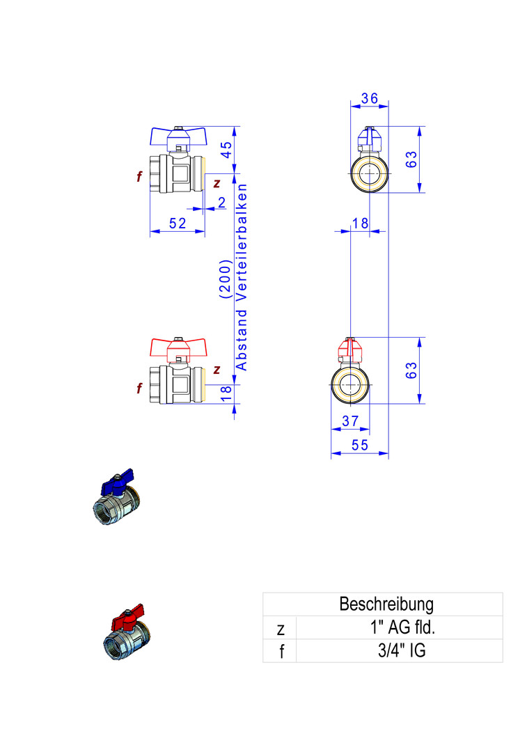 ohne WMZ, Absperrkugelhähne im Vor- und Rücklauf, max. Betriebsdruck 6 bar, max. Betriebstemperatur 80 °C, Länge 52 mm, Kvs-Wert 4,35 cbm/h, Primäranschluss G 3/4 IG