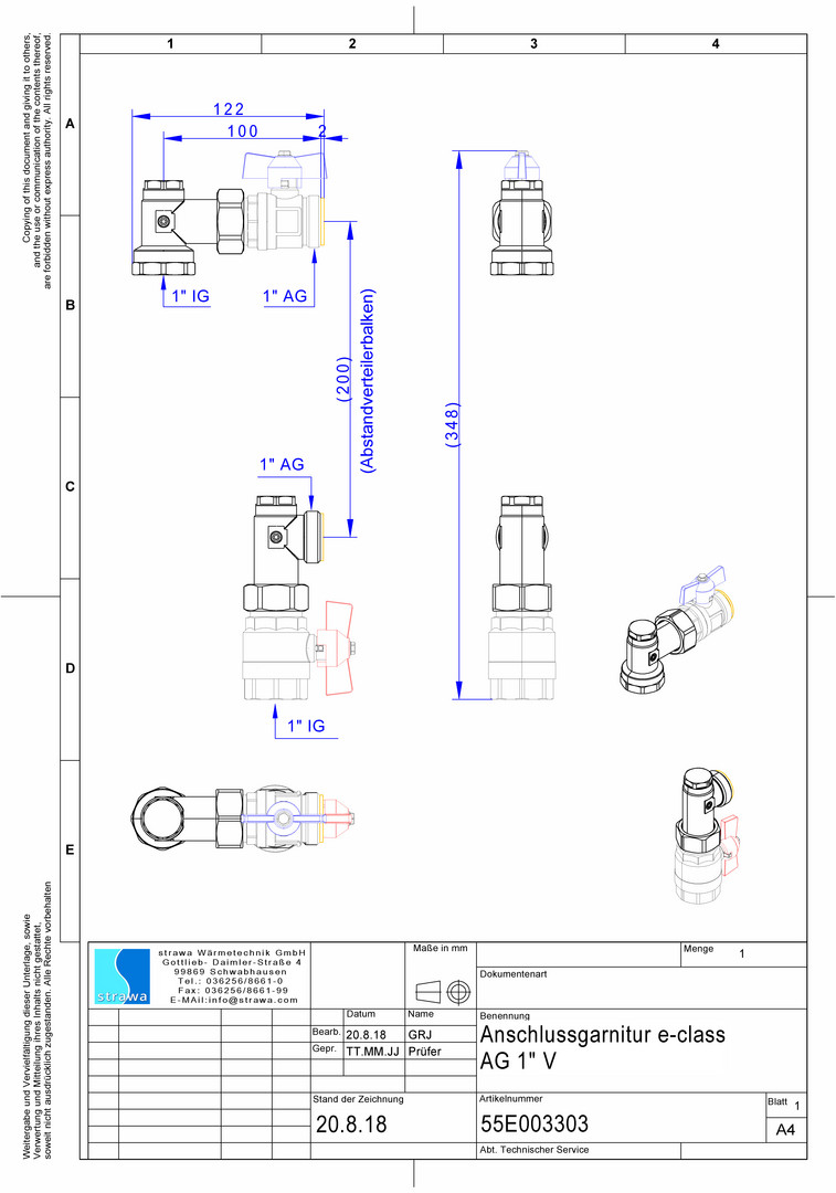 Strawa Anschlussgarnitur e-class AG V 1", vertikal, 2 Kugelhähne