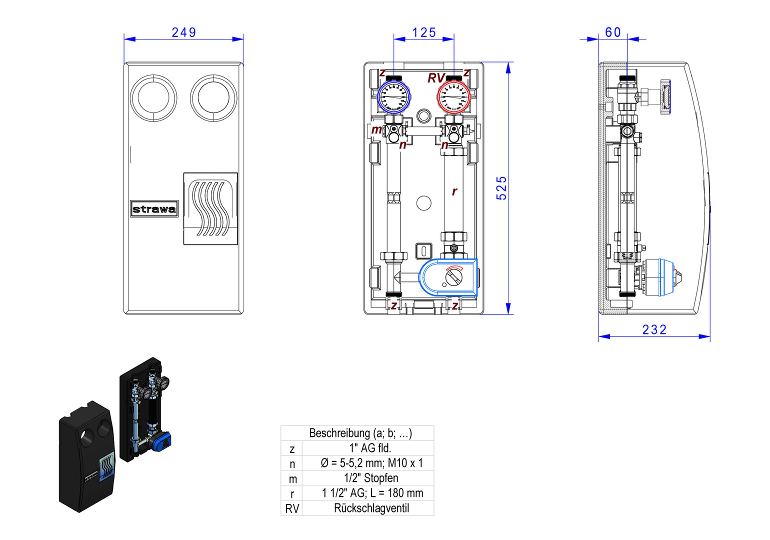 Strawa Aufbaugruppe strawi 125-25 MK MK0-180-SM, geregelt, Pumpenpassstück/Mischer/Stellmotor